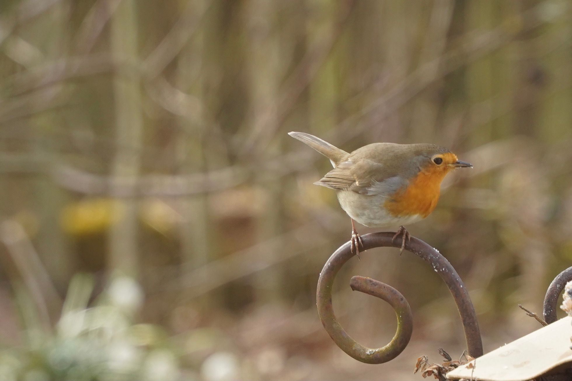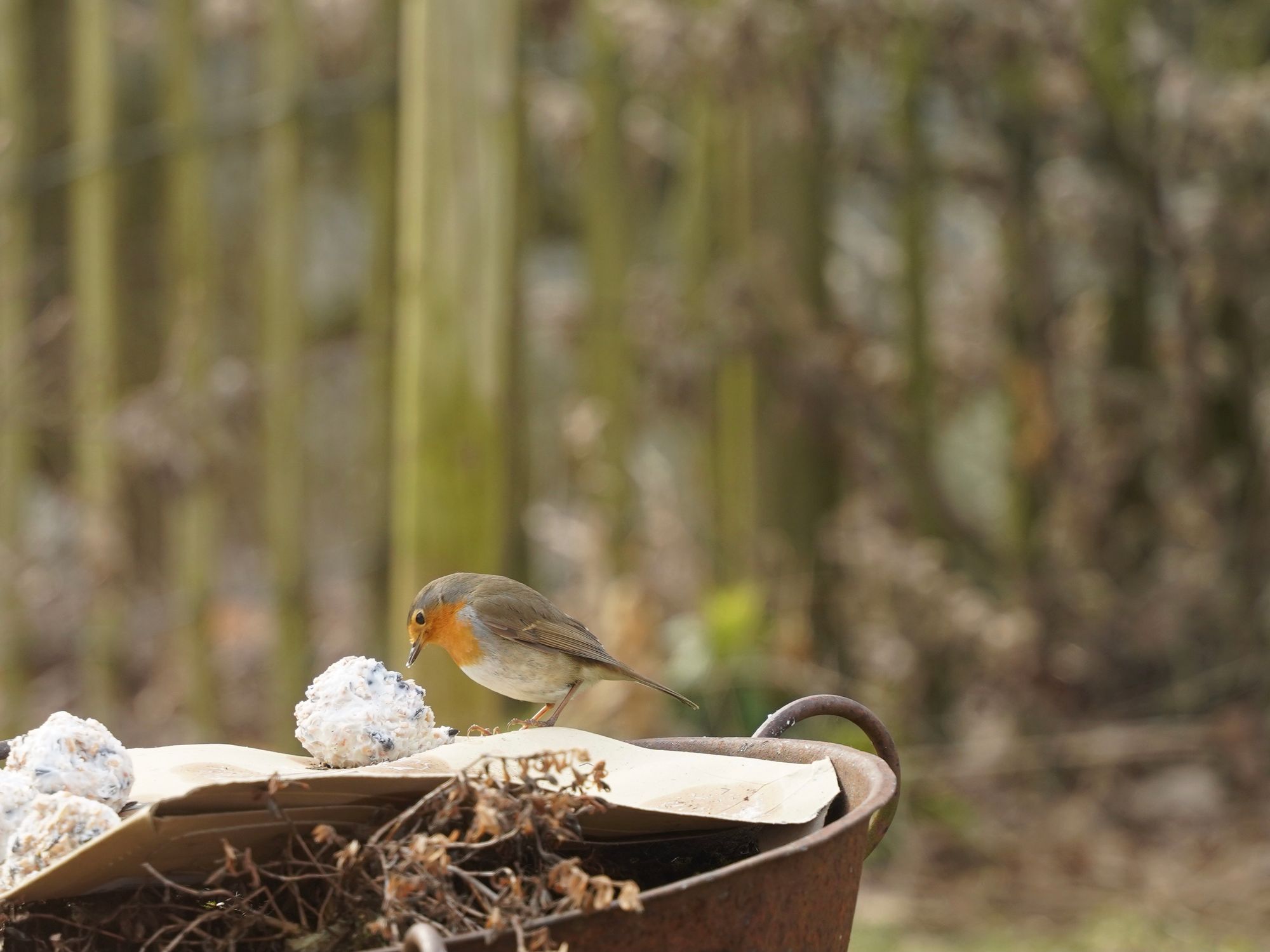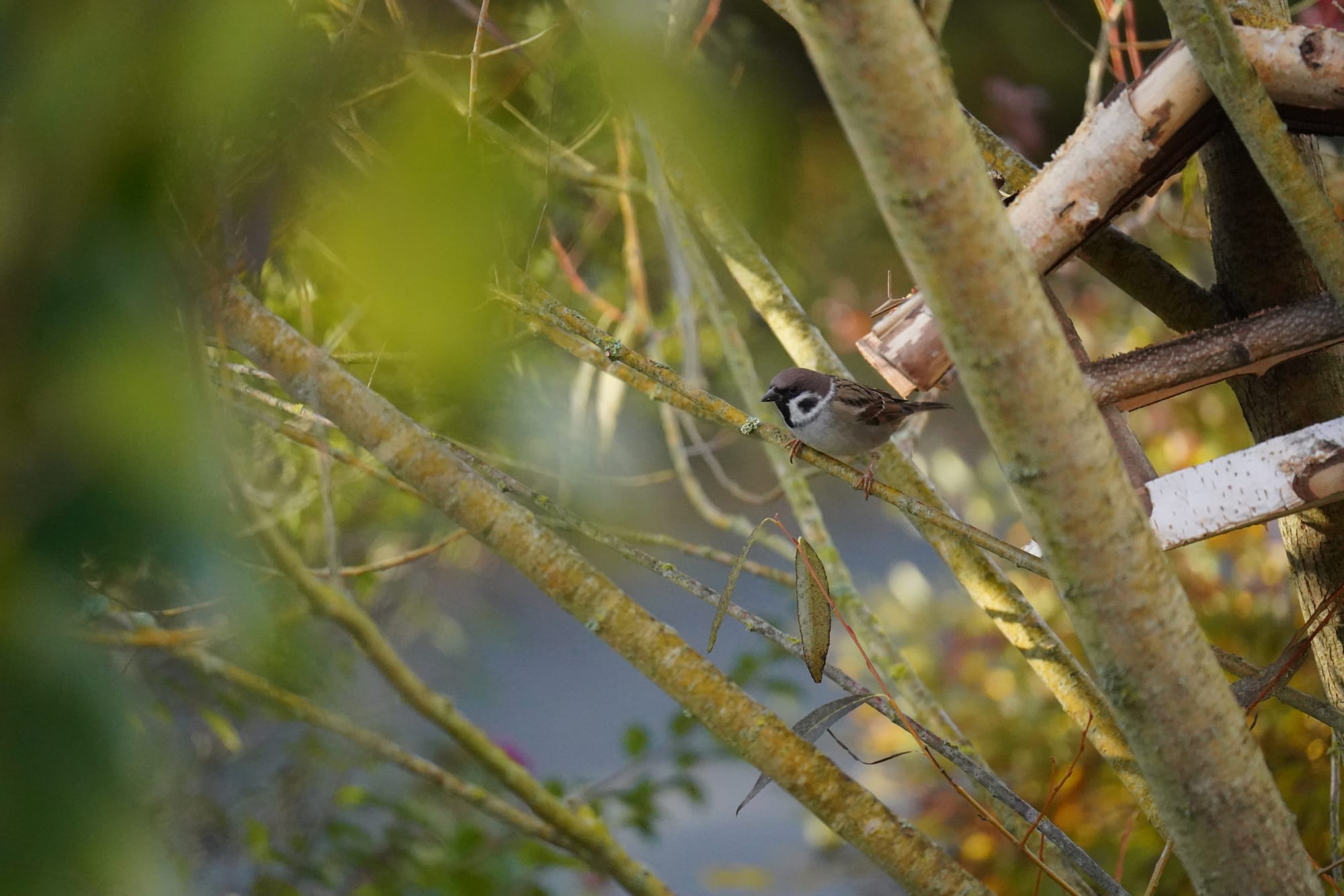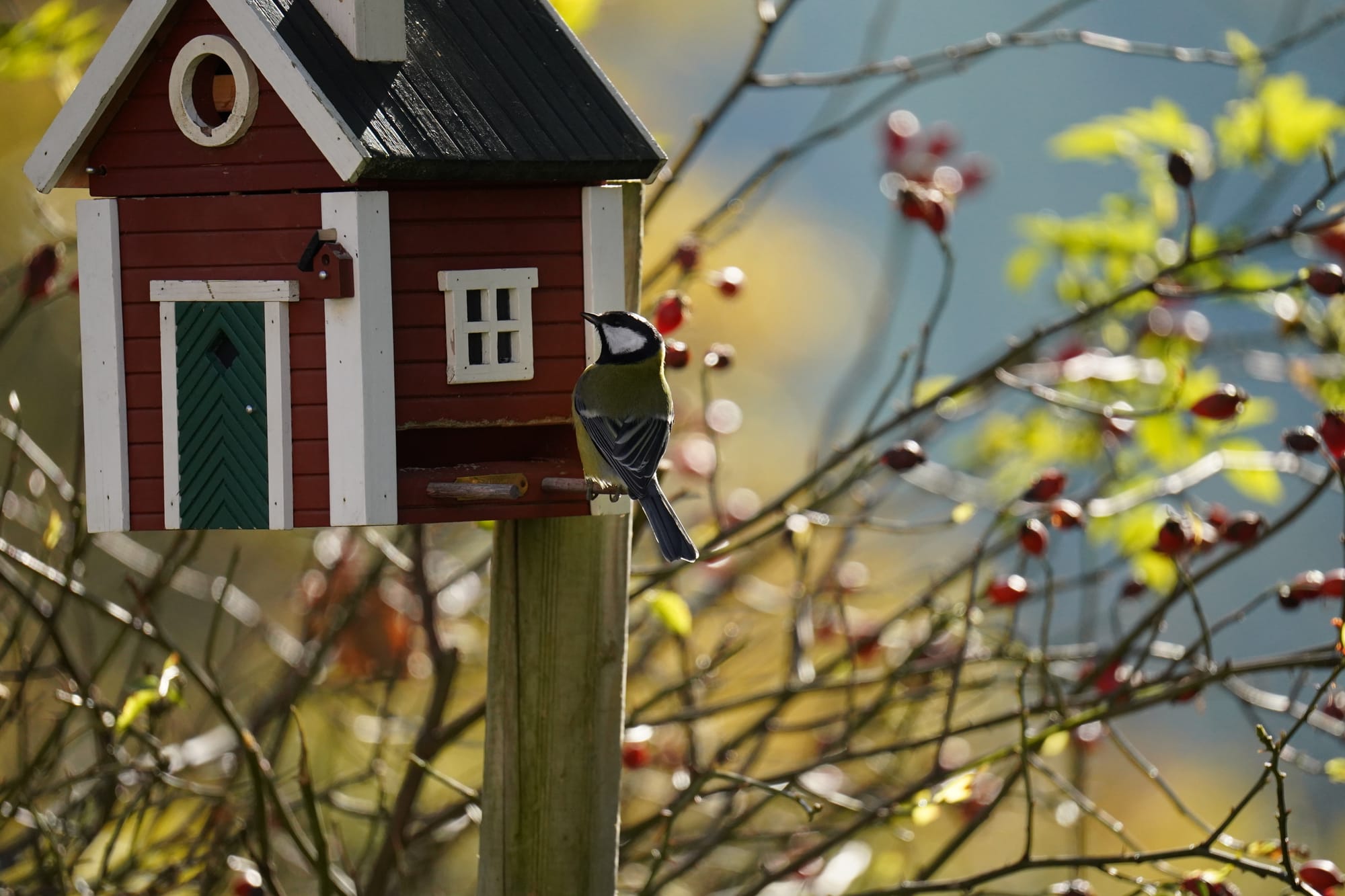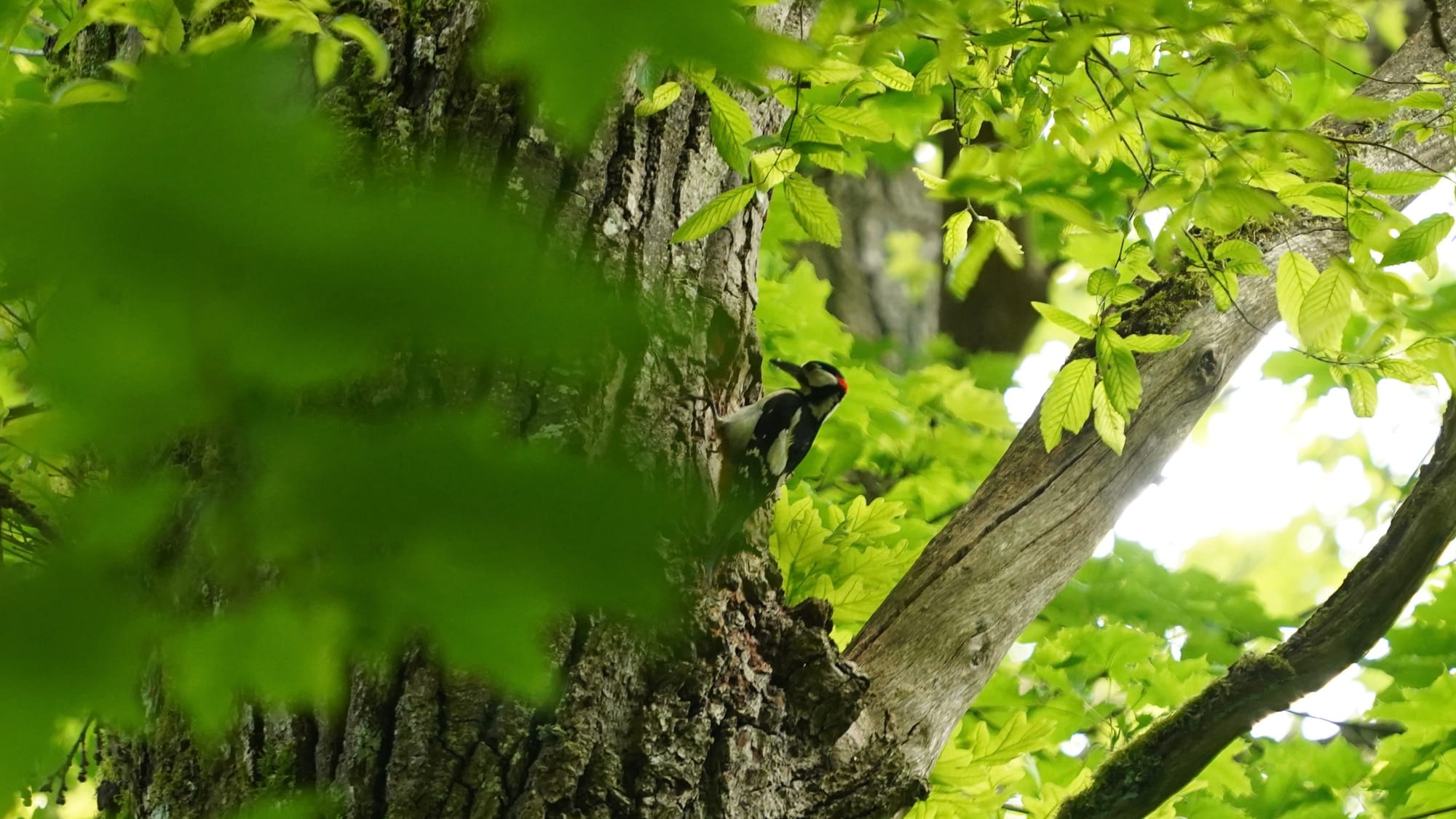 Unser Nachbar ist ein Buntspecht. Ab und zu lässt er sich blicken. Wohnt ein einer alten Eiche. Er ist übrigens auch verantwortlich für die Renovierung unseres Schwedenhaus-Futterhäuschens. Da hat er versucht, ein Loch rein zu graben. Jetzt haben wir ein neues. Nein, kein neues Loch, ein neues Häuschen. Noch.